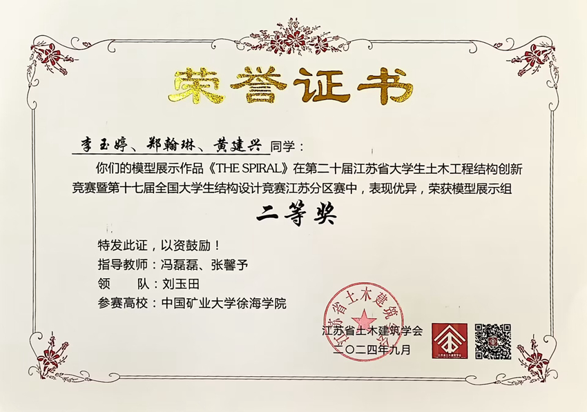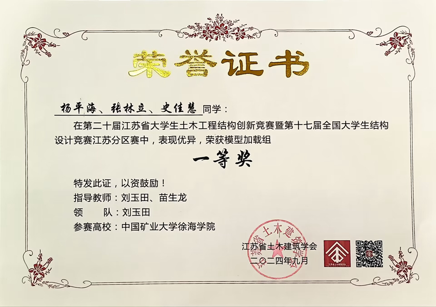 近日,2024年江苏省大学生土木工程结构创新竞赛暨第十七届全国大学生结构设计竞赛江苏分区赛在常州大学举行。来自东南大学、河海大学、南京航空航天大学、中国矿业大学等全省33所高校的52支队伍,开展了题为《考虑水平振动的高耸塔式结构设计与模型制作》的竞赛,38支队伍开展了以“节能、创新”为主题的模型展示组竞赛。经过为期三天的设计、制作与加载。由学院建筑与安全工程系学生杨平海、张林立、史佳慧组建的代表队以加载组全省第4的优异成绩荣获一等奖,提前锁定了“第十七届全国大学生结构设计竞赛”参赛名额。由王进攀、马鸿运、高丹组建的代表队获得加载组二等奖,李玉婷、郑翰琳、黄建兴组建的代表队获得展示组二等奖。