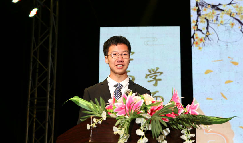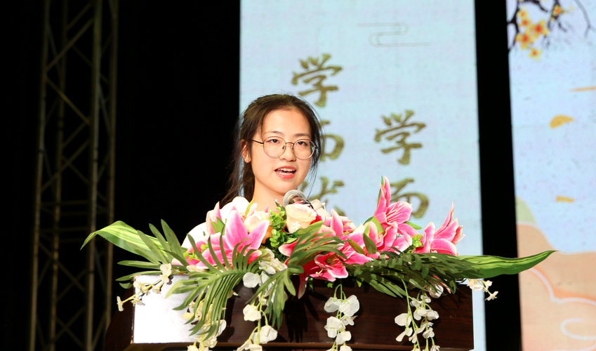 在校生代表、院学生会主席、外语系2019级学生朱越发言