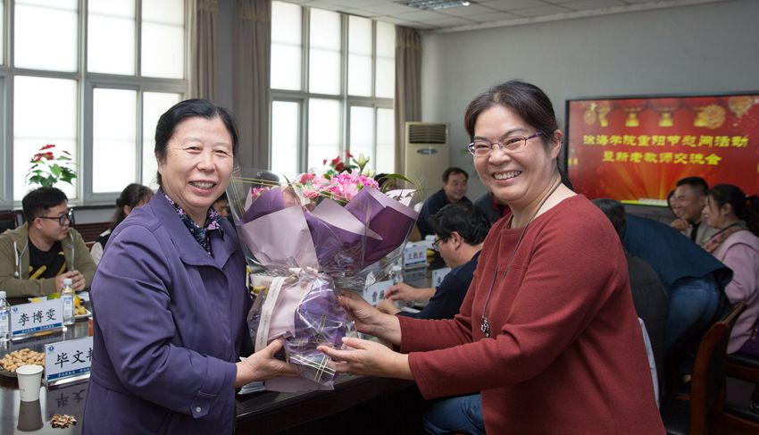 (徐海学院党委举办重阳节慰问活动暨新老教师交流会)