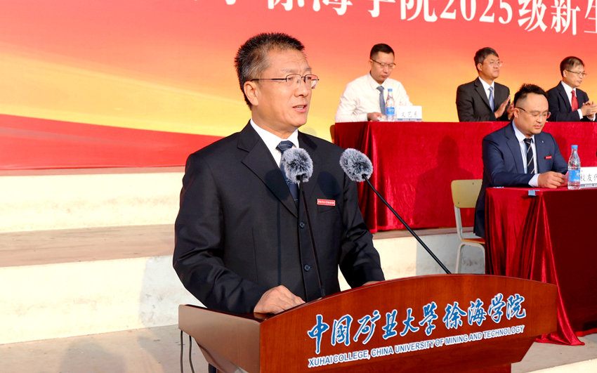 同心筑梦徐海,扬帆共启新程。9月30日上午,徐海学院2025级新生开学典礼暨军训总结表彰大会在中国矿业大学文昌校区运动场举行。中国矿业大学党委常委、副校长,徐海学院理事长黄军利,学院领导,承训部队教官,各系、部、处、室负责人,学工办主任,新生辅导员,教师代表和2025级新生参加典礼。典礼由党委副书记、纪委书记邢雅伟主持。