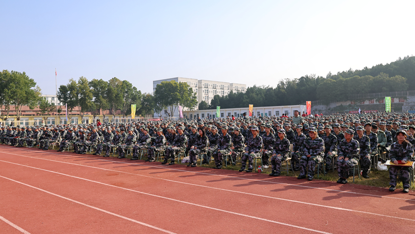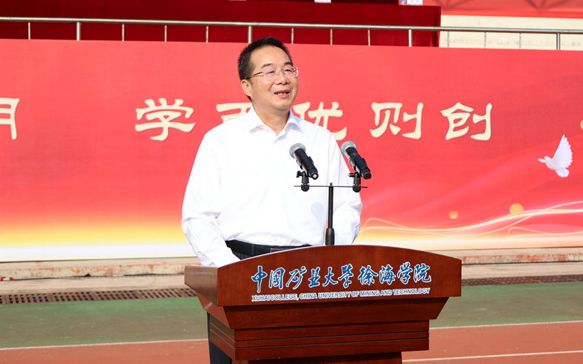 董靖从“生逢盛世,我们何其幸运”“读懂校情,明晰奋斗坐标”“追求卓越,青春筑梦未来”三个方面进行阐述,教育引导新生从国家奋进历程中汲取力量,将个人追求融入国家需要,以青春之我,担时代之责。他首先从回顾新中国成立76年来在经济、科技、民生等领域取得的辉煌成就入题,重温了中国人民抗日战争暨世界反法西斯战争胜利80周年阅兵式,引领新生牢记习近平总书记对青年的殷殷嘱托,“立鸿鹄志、做奋斗者”。他还从历史沿革、教学资源、发展成果等方面详细介绍了学院的办学情况,并结合徐海师生的奋斗故事,勉励2025级新生“立根铸魂”,培养“看透本质的眼力、明辨是非的定力和心怀天下的魄力”,在纷繁复杂的全球格局与思潮碰撞中,坚守价值追求,坚持创新引领,奋力走好新时代的长征路。