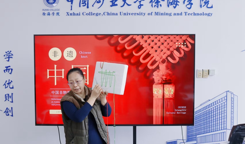 活动特邀徐州香包代表性传承人、徐州市青年艺术家协会理事、薪火学堂特聘辅导员朱正老师担任主讲。活动伊始,朱正老师从“结绳记事”的起源讲起,梳理中国结的历史发展脉络,并重点解读了“同心结”“平安结”等常见结型所蕴含的团圆、祈福等美好寓意。在实践环节,老师逐步演示并拆解中国结的编织步骤与技巧要点。同学们手持材料包,认真跟随指导,从绳线的交叉缠绕到结型的逐渐成型,亲手体验每一道工序。