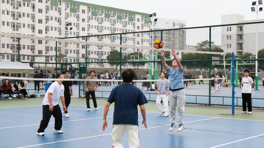 10月18日下午,排球社团在文昌排球场举行“青春跃动,排球有约”主题招新表演赛,通过精彩的赛场对决展现排球魅力,吸引了许多学生前来观赛。