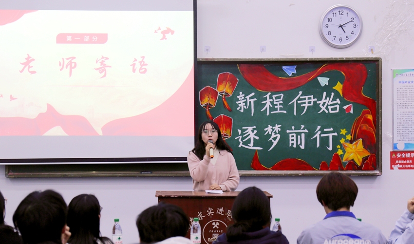 活动在精彩的部门风采视频中拉开序幕。视频生动呈现了院党站各部门的职能特色与成员精神风貌,为现场营造了热烈氛围。随后,院党站指导老师王芳致辞,她对新生力量的加入表示欢迎,并充分肯定工作站过去一年在党建工作中取得的成果。她指出,要在总结经验的基础上勇于创新,不断推动党站工作迈上新台阶。各位站长依次上台分享了自己在党站的成长历程,围绕学习、工作与生活交流心得体会,言语真挚,引发共鸣。在自我介绍环节中,各部门部长与新成员踊跃发言,展现出青春的朝气与诚挚。