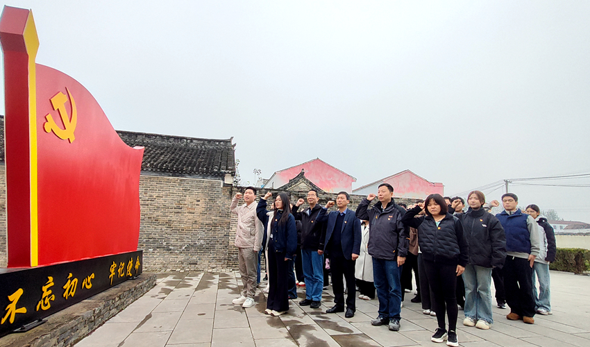 党员们首站抵达张菜园村淮海战役后方总指挥部。在参观过程中,大家有序驻足于展陈前,认真研读文献史料,结合讲解员对历史背景的系统介绍、关键细节的精准剖析以及精神内涵的深入阐释,进一步领会了淮海战役精神内涵。在张菜园党旗前,全体党员庄严宣誓,重温入党誓词。