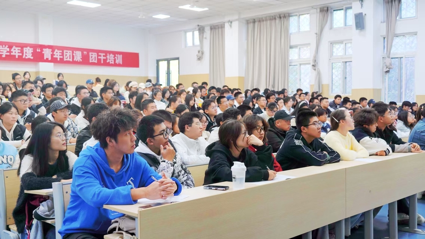 11月5日中午,院团委在一南101举行“青年团校”团干培训第三讲。本次讲座由江苏师范大学院团委学生兼职副书记陆昕砚担任主讲,院团委、各系团总支相关负责人,全院24级、25级团支书参加了本次培训。