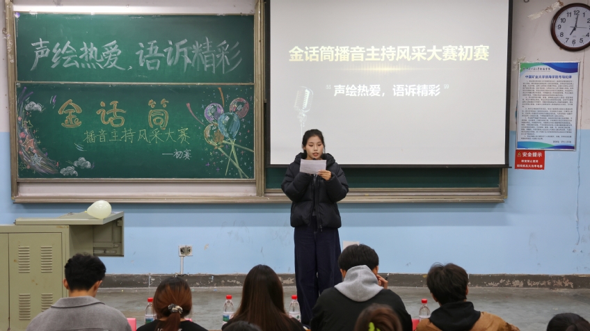 11月8日19:00,大学生融媒体中心在主东一举办“声绘热爱,语诉精彩”金话筒播音主持风采大赛初赛。本次活动面向全院学生,旨在为热爱语言艺术的同学搭建展示才华、交流学习的平台,吸引了全院众多学生踊跃参与。
