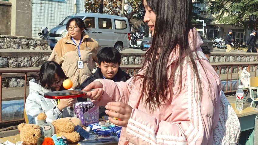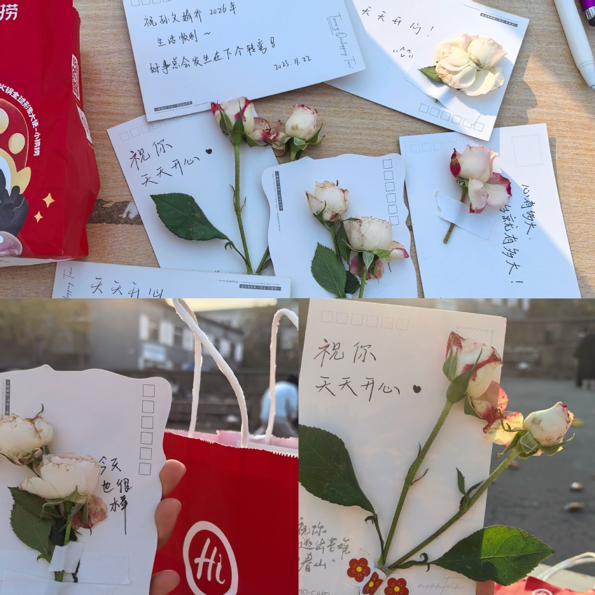 本次活动现场精心设置了六大特色摊位。明信片书写区,同学们认真写下温暖寄语,即可兑换鲜花与特色印章;夹弹珠、乒乓球颠球等趣味挑战区传来阵阵欢笑,吸引了众多同学一试身手;爱心义卖摊位前,一件件闲置物品被赋予新的意义,它们换来的每一分钱,都将全额捐赠福利院;而服务台前的套圈游戏更是将活动推向高潮,由海底捞赞助的优惠券与精美礼品,让参与的师生们尽兴而来、满载而归。这场充满青春气息的校园活动,以“趣味”为纽带,以“温暖”为底色,为徐海学院的初冬校园添上了一抹鲜活亮色。