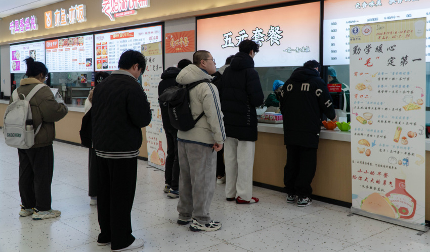 此次爱心早餐活动将持续至12月21日,每日清晨6:40到7:30,学院五味食堂营养早餐窗口和老妈粥铺会准时开放供餐。学生可凭餐券从六款特色套餐里自由挑选。这六款套餐分别为“酱香锦程餐”“蛋饼康安餐”“卷饼顺遂餐”“肠麦盛景餐”“锅饼盈满餐”“包蛋纳福餐”,不仅包含酱香饼、肉肠卷饼、鲜汁包子、金黄煎饺等多样主食,还搭配了温热的粥品、豆浆、早餐奶以及茶叶蛋,既保证了营养均衡,也兼顾了口味多样,每一份都藏着学院对学子的贴心考量。