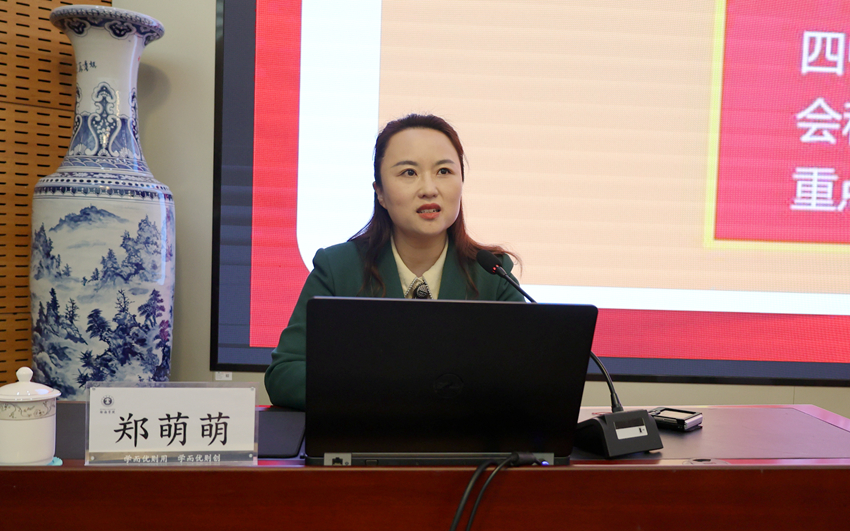 报告会上,郑萌萌以“以中国式现代化全面推进强国建设、民族复兴伟业新局面”为主题,系统梳理了“五年规划”的演进历程,深刻阐释了党的二十届四中全会的重大意义,并对全会提出的新概念、新观点、新论断进行了具象化解读。报告主题鲜明、内容详实、论述精辟、深入浅出,既有理论高度与思想深度,又具备突出的针对性与指导性,不仅对全面学习、准确把握、深入贯彻全会精神起到了重要的推动作用,也为学院科学谋划“十五五”规划提供了明确的理论指引与方向遵循。