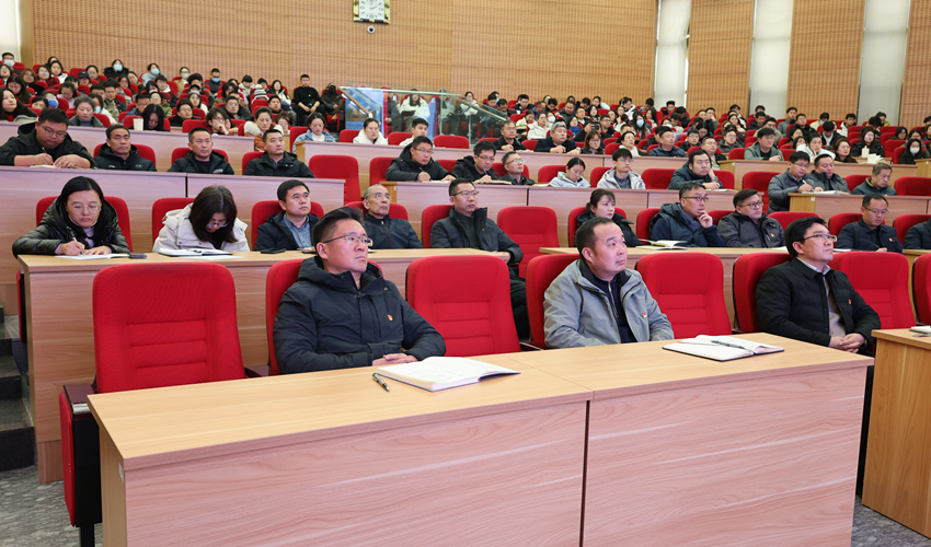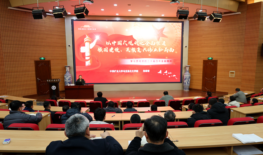 12月12日下午,学习贯彻党的二十届四中全会精神市委宣讲团报告会在徐海学院举行。学院党委特邀徐州市委宣讲团成员、中国矿业大学马克思主义学院教授郑萌萌在网络大讲堂作专题辅导报告,学院领导、中层干部、党支部书记、党员教职工、民主党派代表、学生代表到会学习。报告会由党委副书记、纪委书记邢雅伟主持。