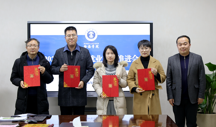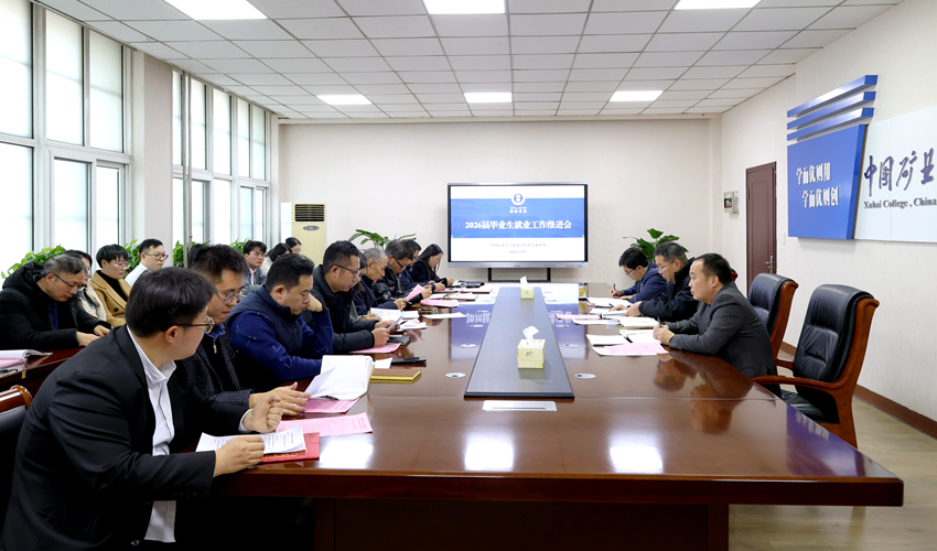 1月8日下午,徐海学院在主楼907会议室召开2026届毕业生就业工作推进会。党委书记董靖,常务副院长于忠华,党委副书记、纪委书记邢雅伟出席会议,学院各系负责人、学工办主任,院就业指导中心相关人员,2025届就业工作先进集体和优秀个人代表参加会议。会议由邢雅伟主持。