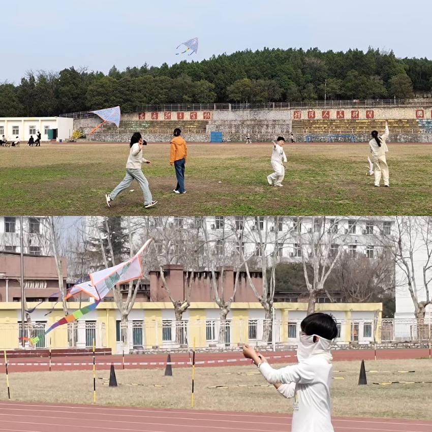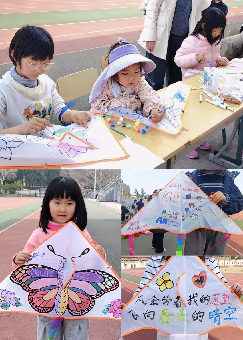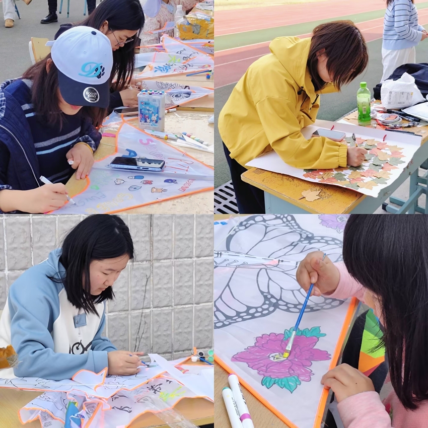 活动伊始的 “春叶书心”环节,大家自愿领取一片春日树叶,将心底的祝福、期许或生活感悟细细书写其上,共同粘贴至展板,拼贴成一棵满载心意的“心愿大树”。叶片相连间,细碎的心事被温柔承接,真挚的情感在指尖传递。随后的纸鸢创作环节,同学们挑选空白风筝与手绘材料,以小组为单位开启创意之旅。斑斓颜料在素帛上晕染,青春的向往与憧憬化作灵动的图案,每一只风筝都成为独一无二的情感载体。创作完成后,大家齐聚操场,迎着春风奔跑放线,纸鸢扶摇直上,与蓝天、春光相映成趣。奔跑的脚步声、欢笑声与风筝线的轻响交织,压力随纸鸢飞向远方,满心的欢喜与释然在春日里肆意蔓延。