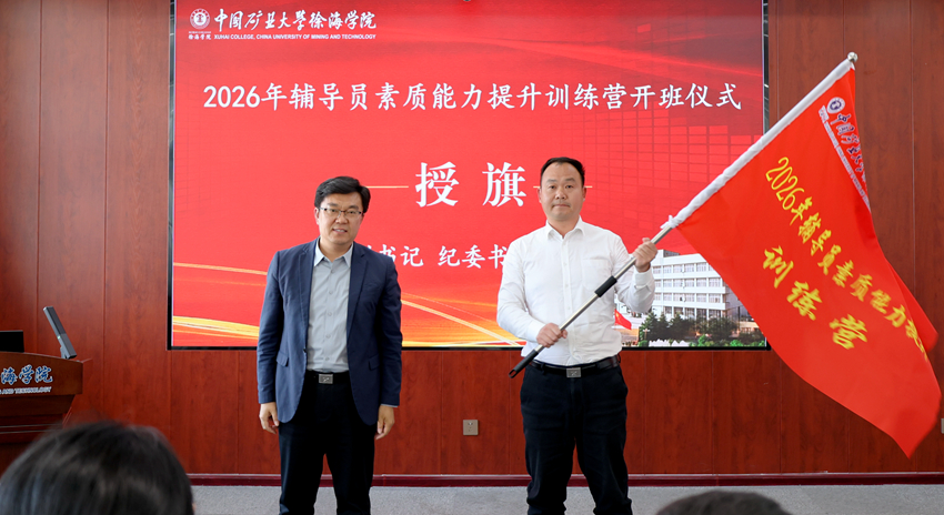 为深入落实立德树人根本任务,持续加强辅导员队伍专业化、职业化、专家化建设,全面提升辅导员政治素养、业务能力和育人水平,4月10日下午,徐海学院在主楼915会议室举行2026年辅导员素质能力提升训练营开班仪式暨首场专题讲座。党委书记董靖,党委副书记、纪委书记邢雅伟出席活动。学工处相关负责同志、各系学工办主任和全体专职辅导员参加活动。开班仪式由学工处处长时鹏飞主持。