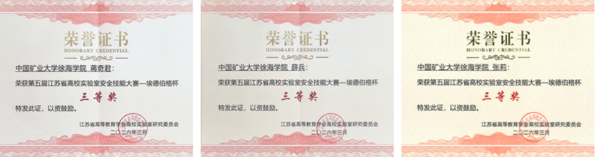 近日,由江苏省高等教育学会高校实验室研究委员会主办、南通大学承办的“第五届江苏省高校实验室安全技能大赛”圆满落幕。经过理论和实操考核两阶段激烈角逐,徐海学院代表队凭借扎实的专业知识和出色的团队协作能力,荣获三等奖。