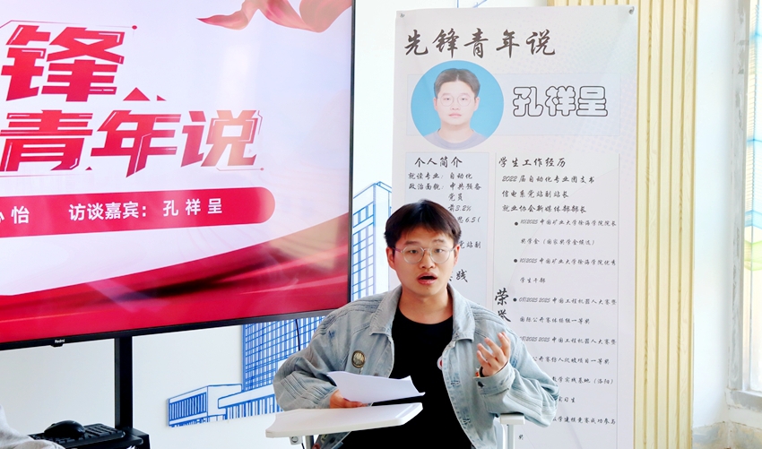 访谈中,孔祥呈结合自身实际,围绕专业学习、学科竞赛、学生工作、实习实践四个方面,系统分享了个人成长心得与实践经验,展现了新时代青年党员锐意进取、勇于担当的精神风貌。在互动问答环节,现场同学踊跃提问,就学业规划、时间管理、党员先锋模范作用发挥等话题与嘉宾深入交流。孔祥呈的真诚分享与细致解答,为在场同学提供了切实可行的奋斗参考。