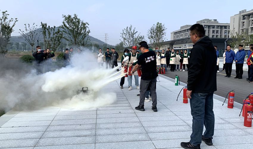 王锐围绕消防安全基本常识、火灾初期扑救技巧、人员应急疏散流程、火场逃生自救方法等核心内容进行深入浅出的讲解,并针对食堂场景特点,重点强调了燃气安全使用规范、电气设备日常检查要点等关键知识。理论讲解结束后,他现场演示了灭火器的“提、拔、握、压”正确操作步骤,详细说明使用过程中的注意事项及常见误区。在实战演练环节,参训员工分组有序进行灭火器实操训练,大家严格按照规范动作,对准模拟火点进行灭火操作,现场指导老师及时纠正不规范动作,确保每位员工都能熟练掌握灭火器使用技能,真正实现“理论学得会、实战用得上”。